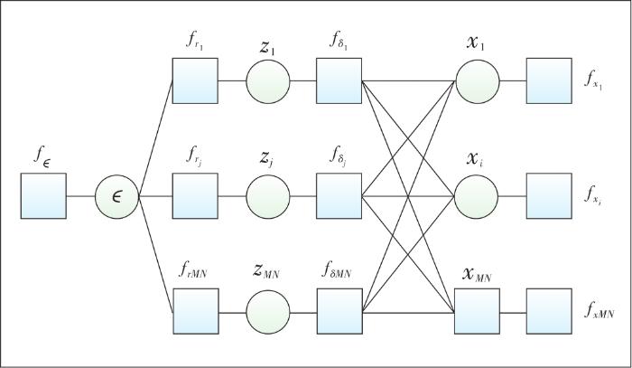 Based on the factor graph in Fig. 2, a message passing algorithm was proposed in Ref. [2], and the detector is called MP detector in this paper. The following is a brief derivation of the message computations in the i-th iteration of the message computations.